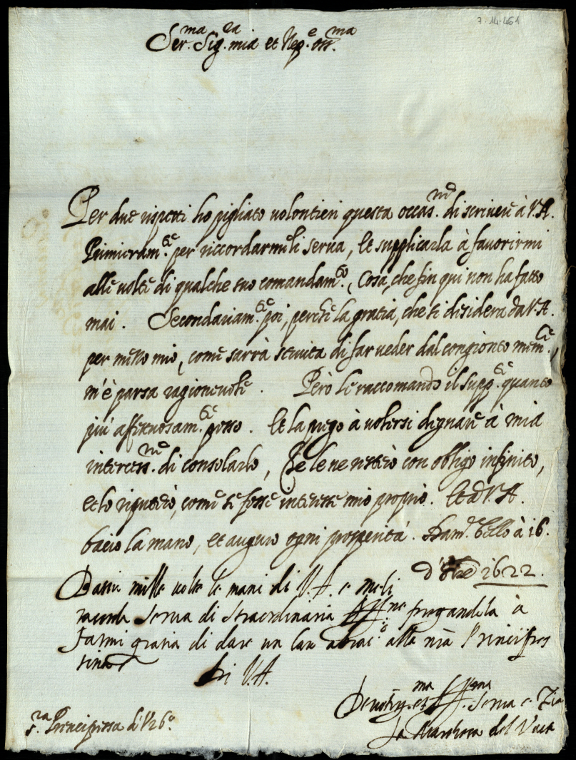 Lettere, memoriali al Serenissimo Principe d'Urbino appartenenti alla carica di segretario di Giustizia