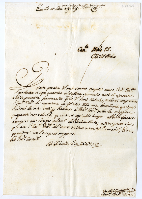 Lettera di Agostino Maria Dini al cardinale Annibale Albani (1723 dicembre 18)