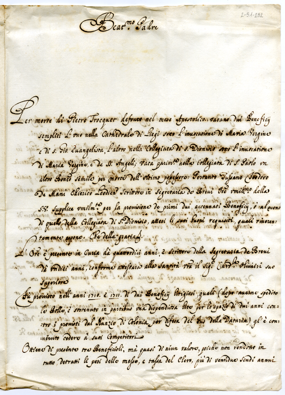 Chiede i benefici vacanti per morte di Pietro Trocquet e allega i suoi requisiti