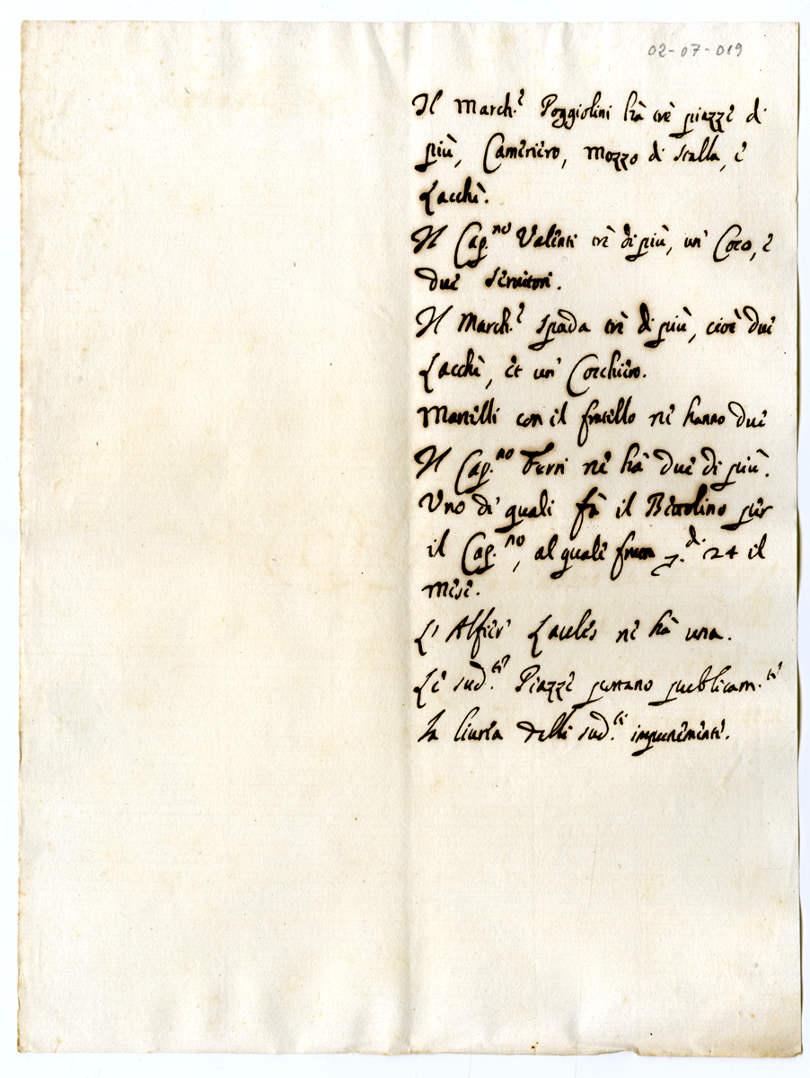 Annotazioni sul personale a disposizione di alcuni ufficiali
