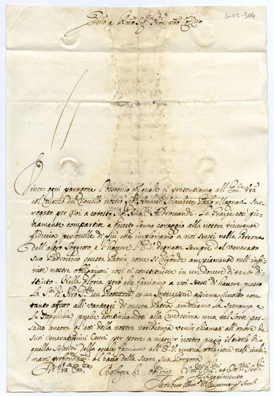 Lettera di Giacomo Antonio di Bergamo al cardinale Annibale Albani (1715 ottobre)