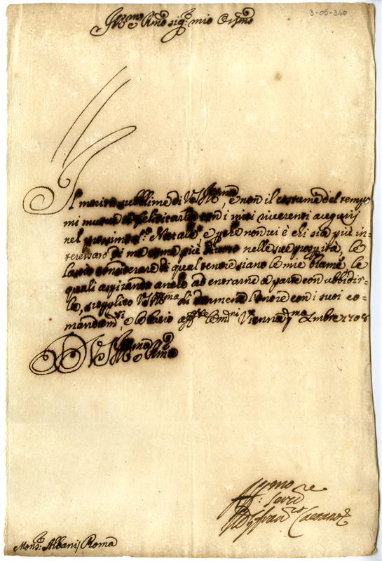 Lettera di Giovanni Francesco Caetano ad Annibale Albani (1708 dicembre 1)