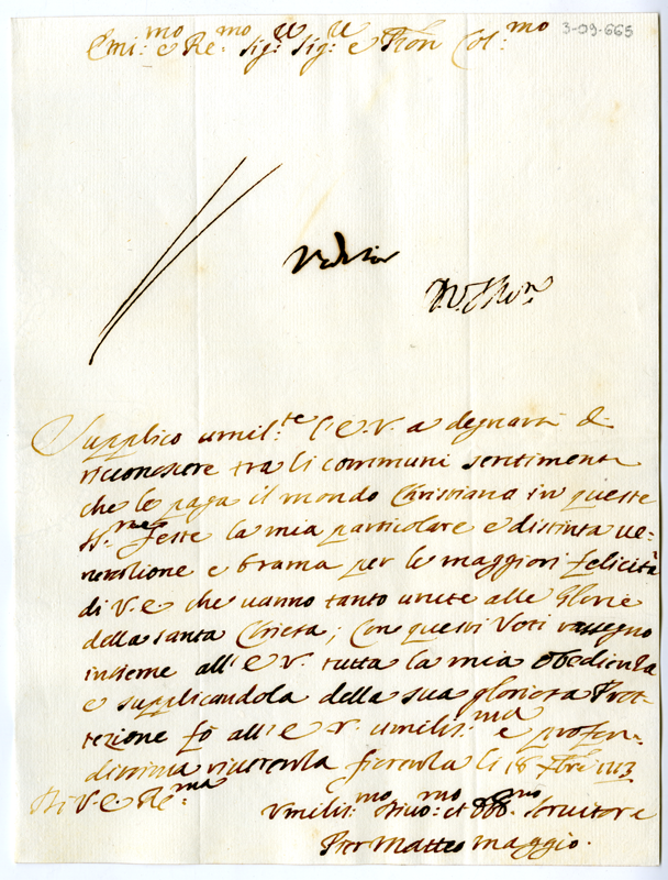 Lettera di Pier Matteo Maggio al cardinale Annibale Albani (1713 dicembre 18)
