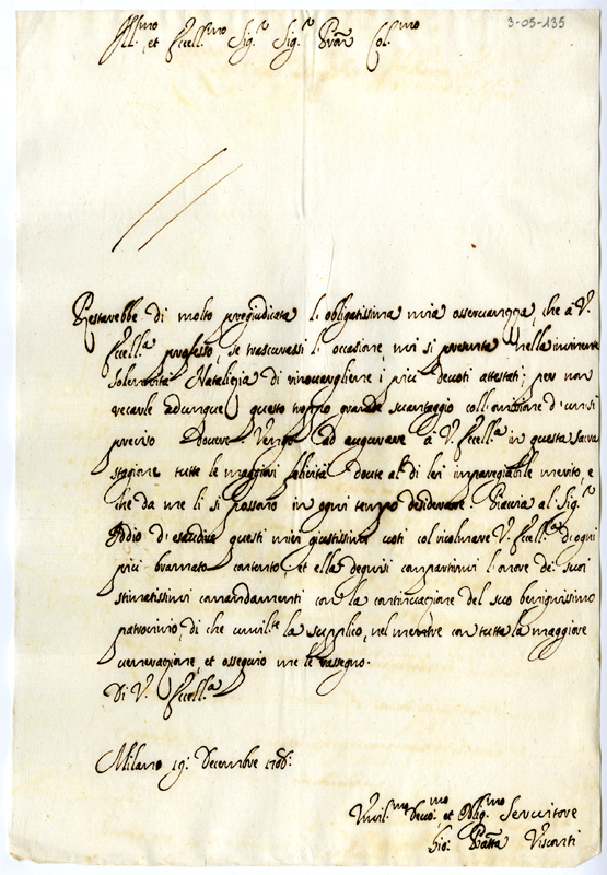 Lettera di Giovan Battista Visconti ad Annibale Albani (1708 dicembre 19)