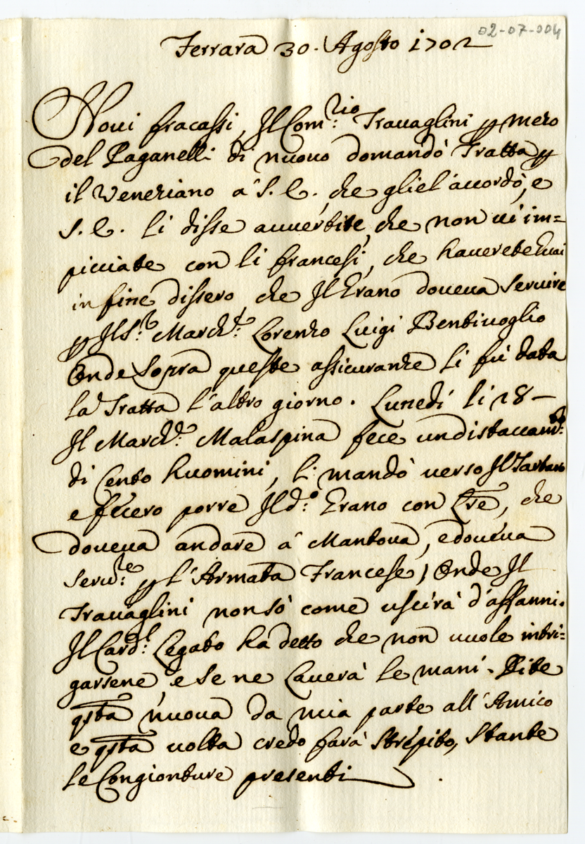 Nuove notizie sulla spedizione del grano per i francesi (1702 agosto 30)