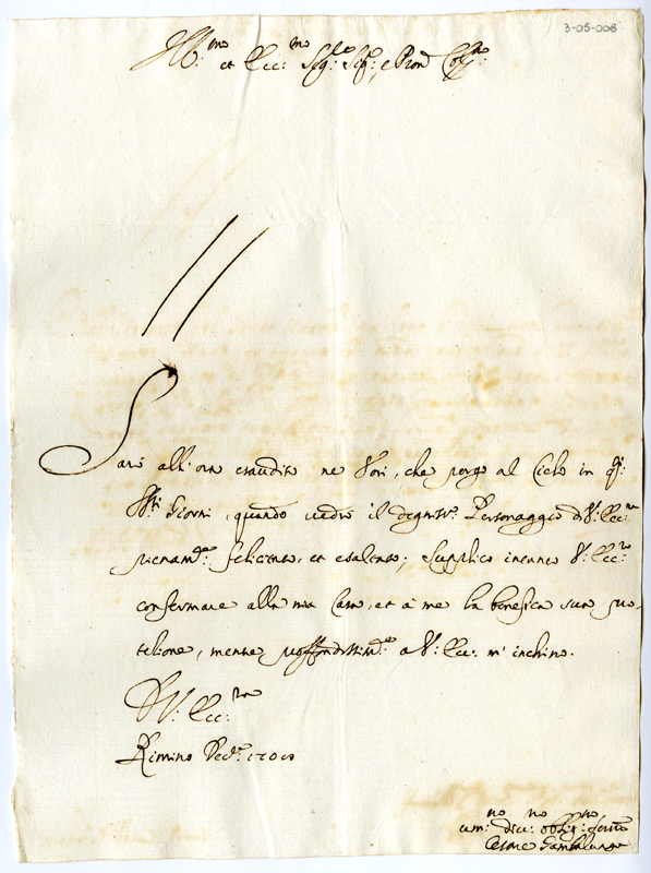 Lettera di Cesare Gambalunga ad Annibale Albani (1708 dicembre)