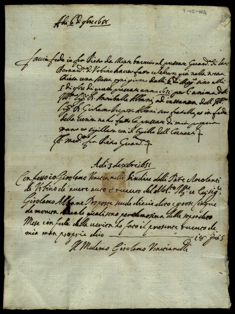 Corrispondenza di Orazio Albani per la morte dei figli Annibale e Malatesta, e altri documenti
