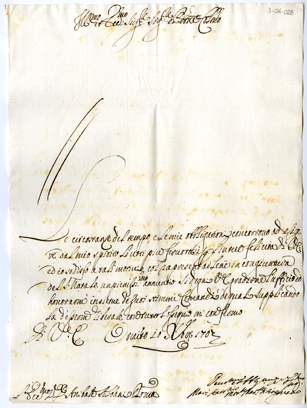 Lettera di Marc'Antonio marchese di Sitignano ad Annibale Albani (1707 dicembre 10)