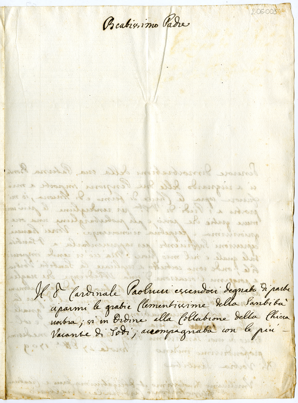 Lettera di Filippo Antonio Gualterio a Papa Clemente XI (1709 ottobre 27)
