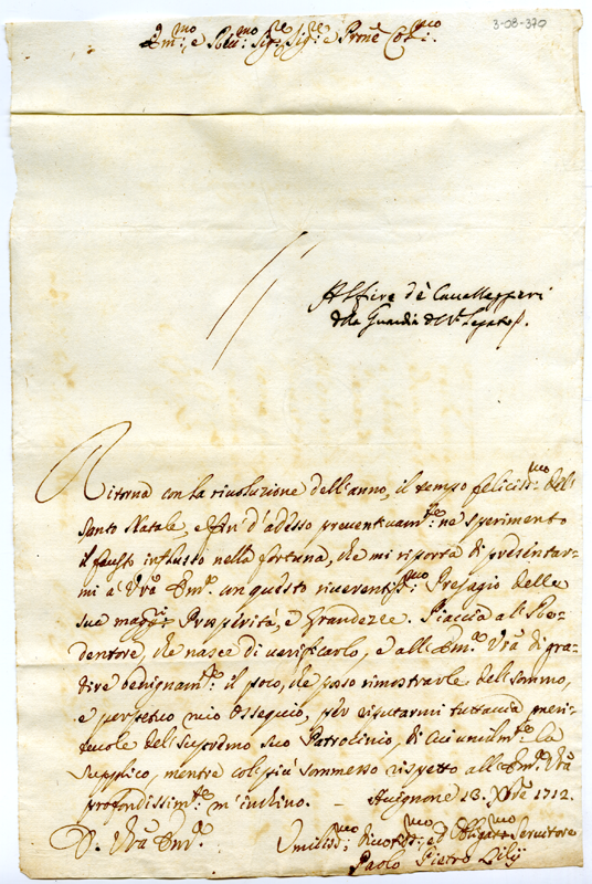 Lettera di Paolo Pietro Lili al cardinale Annibale Albani (1712 dicembre 13)