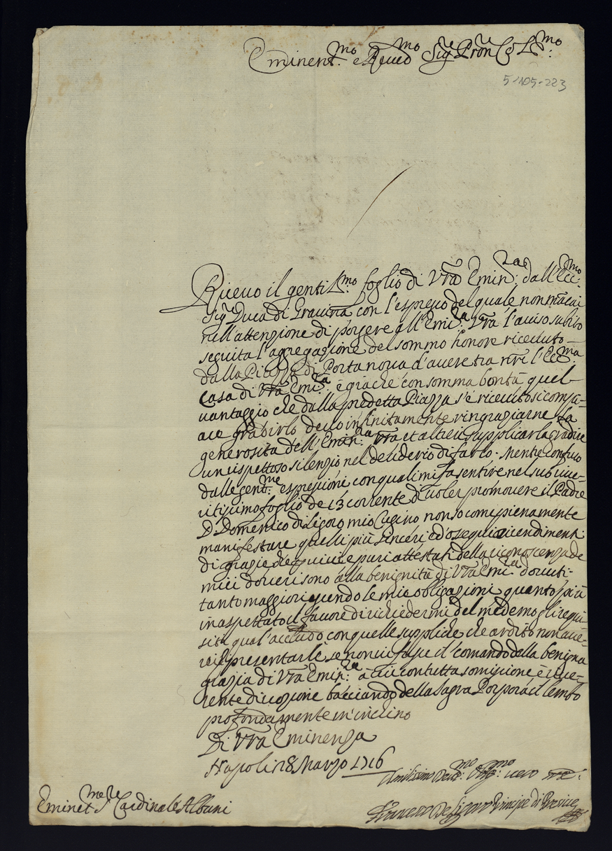 Lettere di confidenza. 1716 e 1717