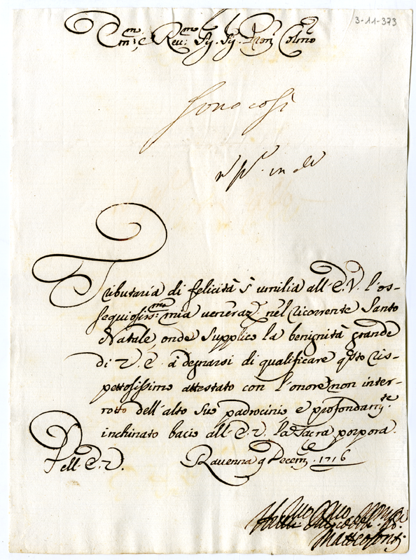 Lettera di Matteo Conti al cardinale Annibale Albani (1716 dicembre 9)