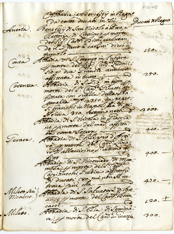 4. Abbadie e benefici in Regno di Napoli da cento ducati in su (1700)