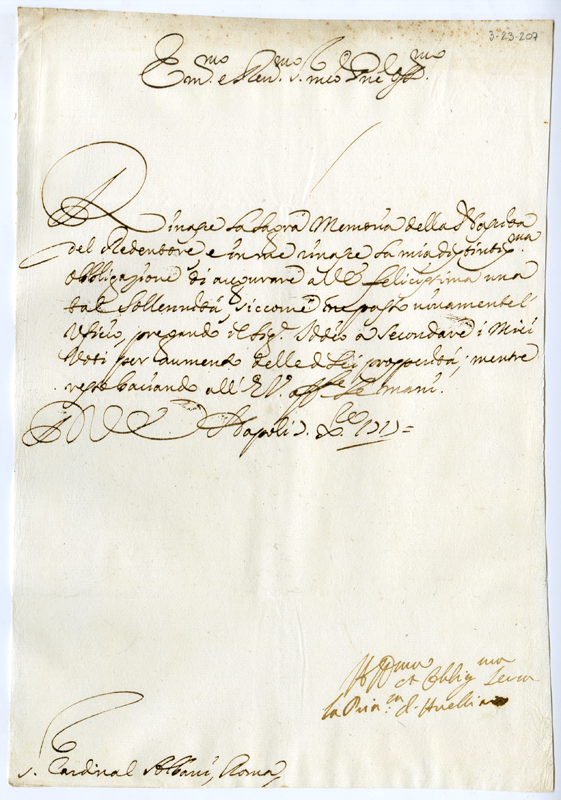 Lettera della principessa di Avellino al cardinale Annibale Albani (1717 dicembre 7)