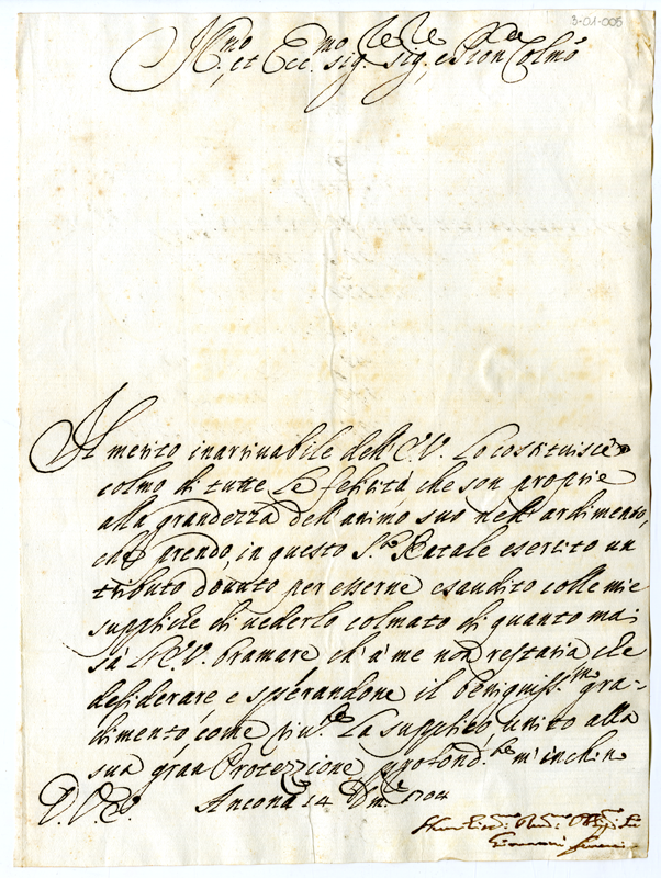 Lettera di Giovanni Ferretti ad Annibale Albani (1704 dicembre 14)