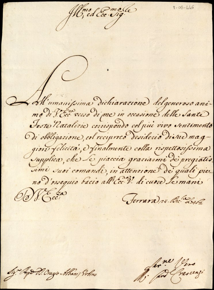 Lettere ricevute in Urbino dal Signor Principe Orazio Albani ultimo di questo nome nell'anno 1746