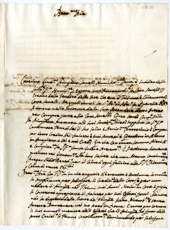 Lettera della principessa Savelli a papa Clemente XI (1700-1721)