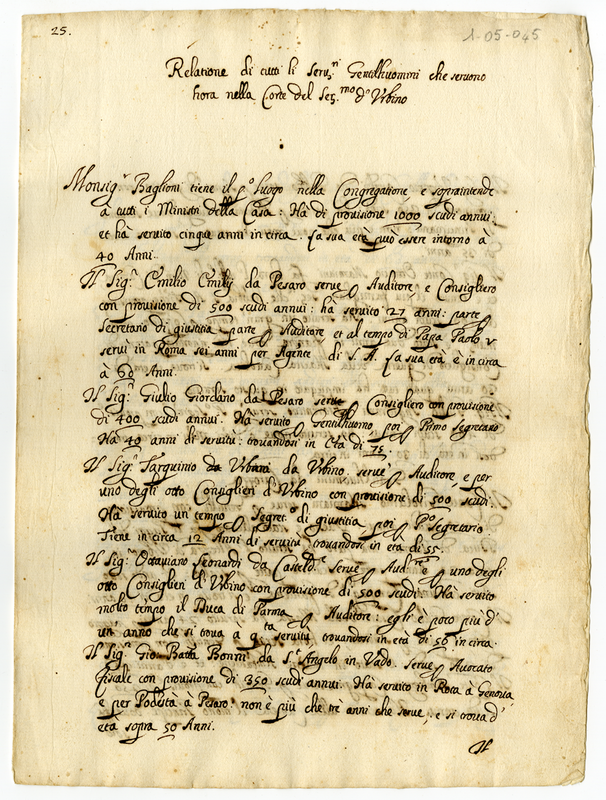 Relatione di tutti li servitori gentilhuomini che servono hora nella corte del serenissimo duca