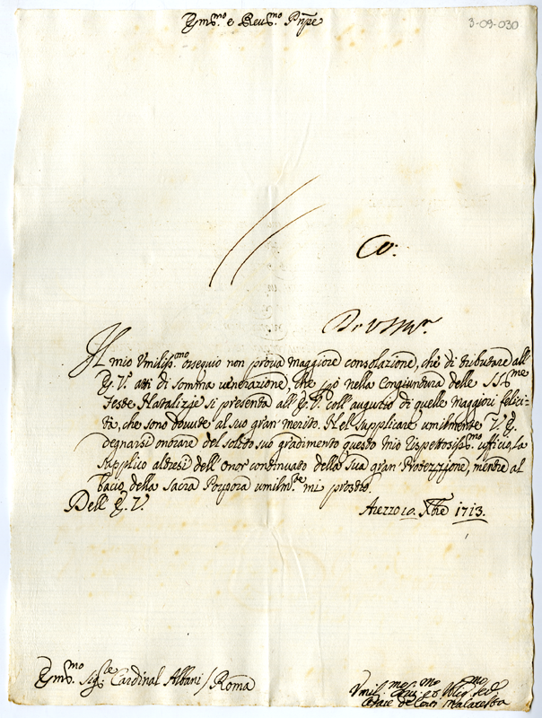 Lettera di Cesare de' conti Malatesta al cardinale Annibale Albani (1713 dicembre 10)