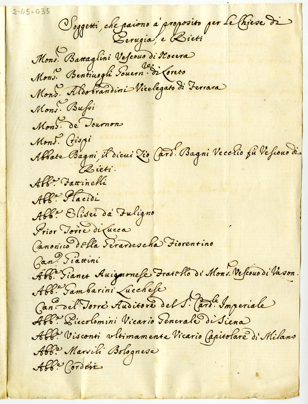 | bo.livello.titolo2 | Archivio Albani|"Vescovati e Beneficii Ecclesiastici vacati, e provvisti da Papa Clemente XI nelle Diocesi de suoi Stati d'Italia, e di Avignone"|Documenti contenuti | |