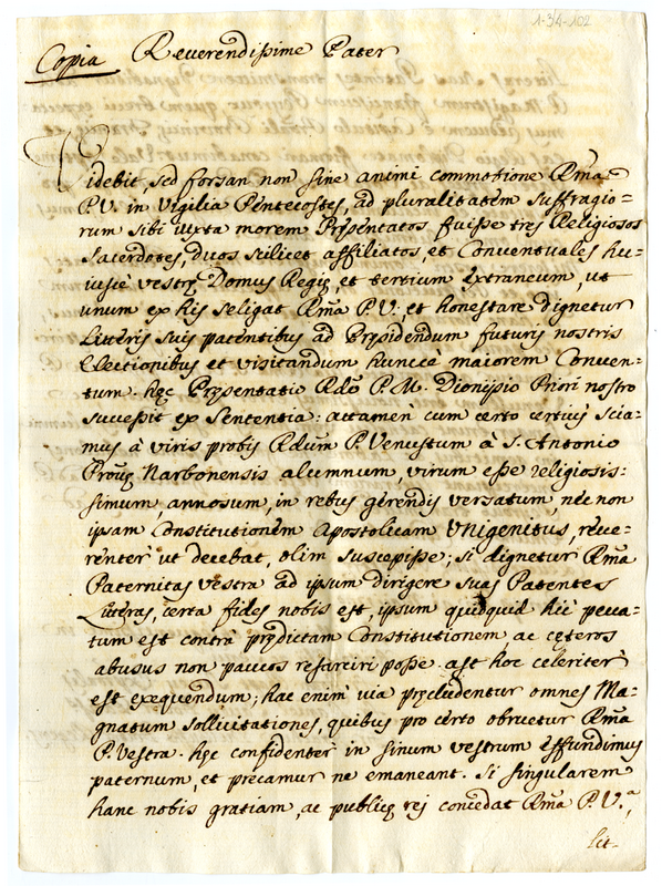 Copia. Lettera di Giovanni Battista Savej, Daniele Savej, Gioacchino Du Buffé al reverendissimo padre (1720 maggio 21)