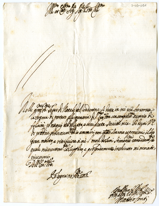 Lettera di Matteo Conti ad Annibale Albani (1706 dicembre 18)