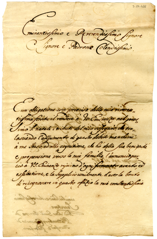 Lettera di Federico Bernardo Guglielmo barone di Plettenberg canonico di Munster e Paderborn al Cardinale Annibale Albani (1717 dicembre 11)