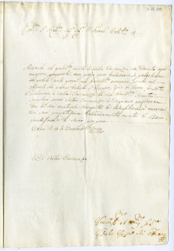 Lettera di Urlico vescovo di Coira al cardinale Annibale Albani (1727 dicembre 10)
