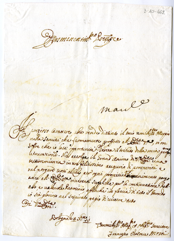Lettera di Francesco Mosti al cardinale Annibale Albani (1715 dicembre 4)