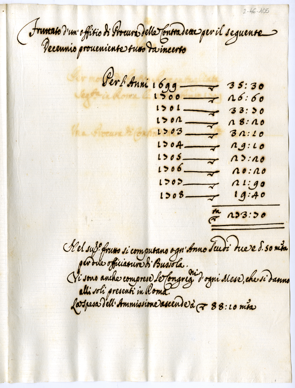 Fruttato d'un'offitio di procura delle Contradette per il seguente Decennio proveniente tutto da incerto (1708)