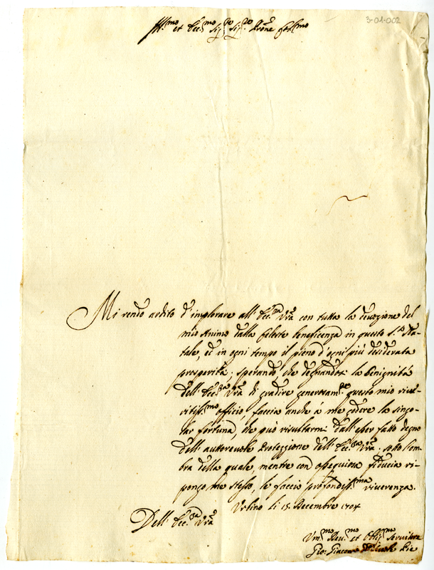 Lettera di Giovanni Giacomo delle Scuole Pie ad Annibale Albani (1704 dicembre 15)