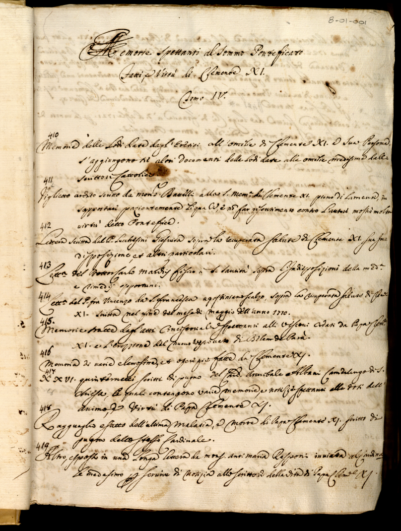 Memorie spettanti al sommo Pontificato fatti e virtù di Clemente XI. Tomo IV