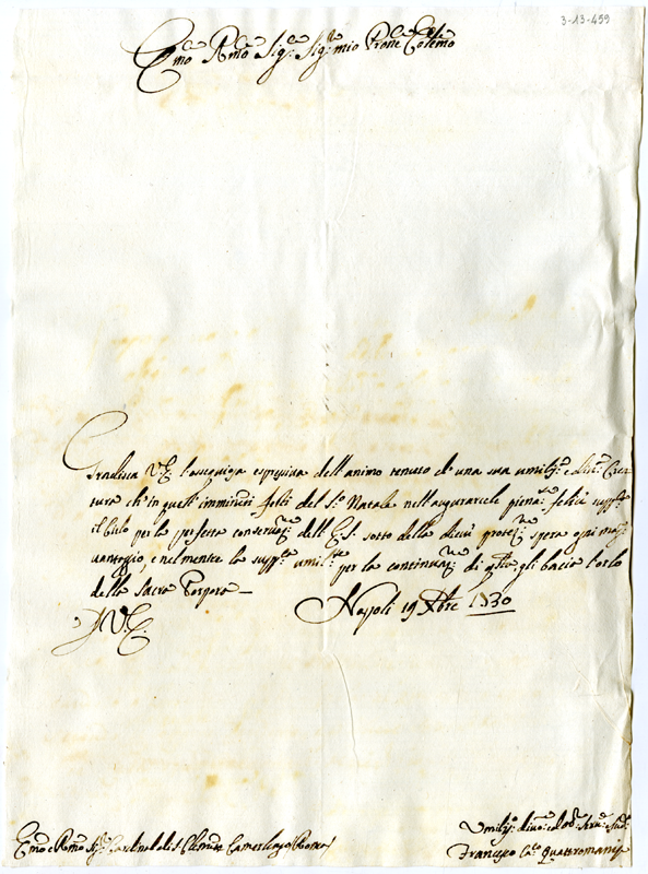 Lettera di Francesco Quattromani al cardinale Annibale Albani (1730 dicembre 19)