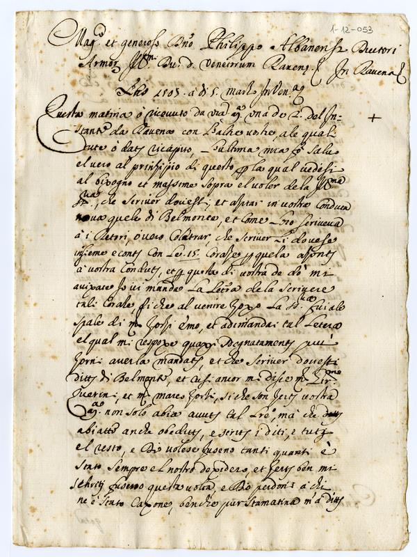 Copia di lettera di Antonio della Gatta a Filippo Albanese (1507 marzo 5)