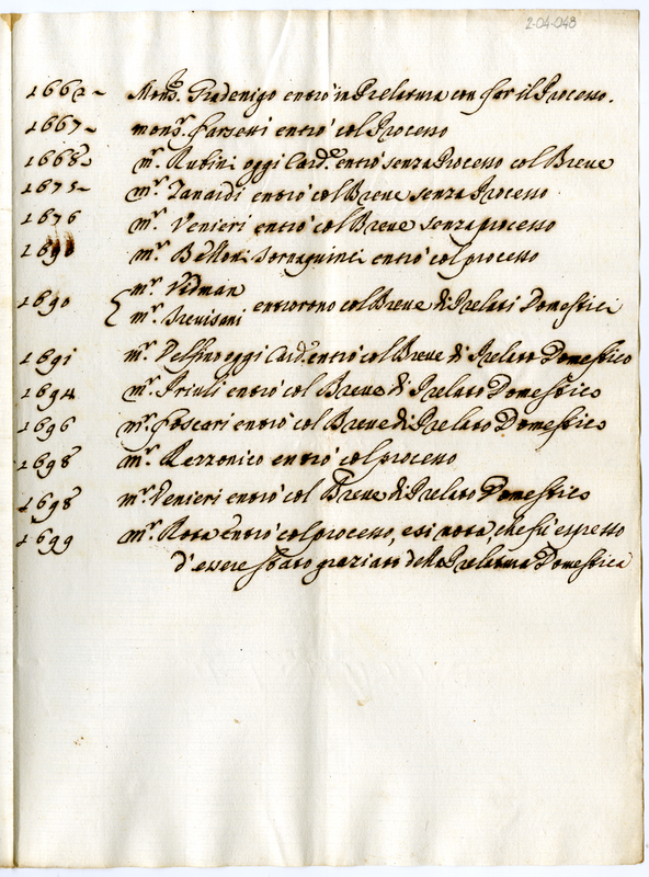 4. Elenco di nominativi entrati in Prelatura negli 1662-1699