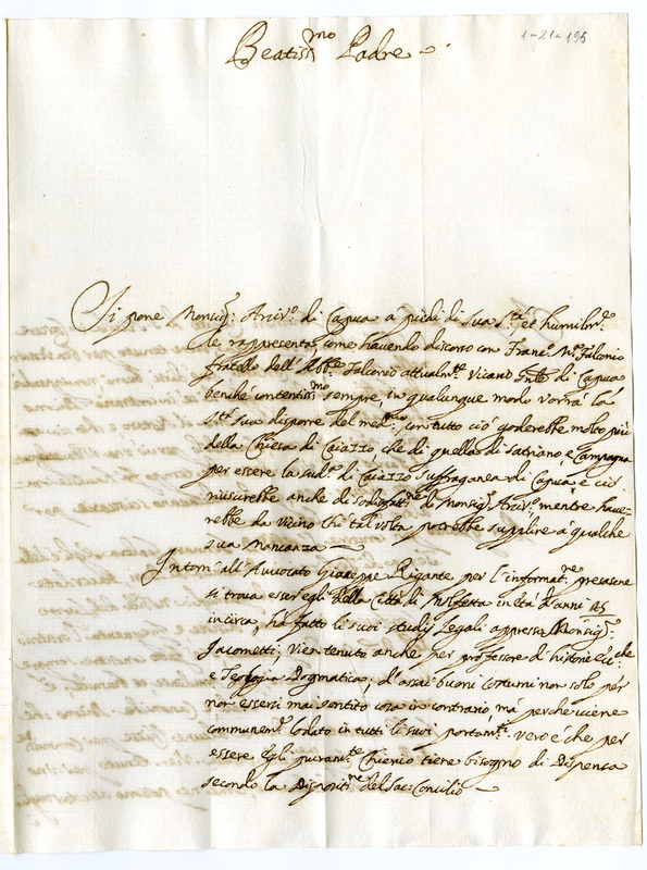 Lettera dell'arcivescovo di Capua a Clemente XI (1700-1721)