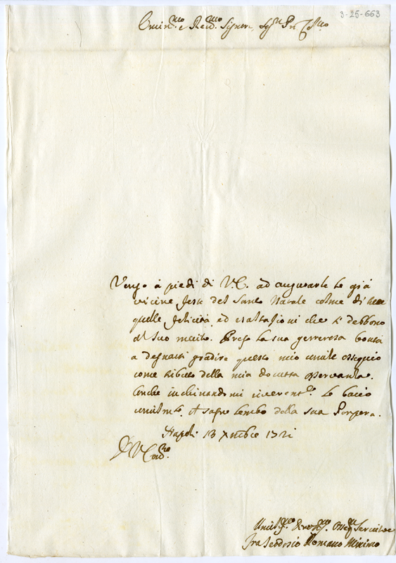Lettera di fra Teodosio Romano minimo al cardinale Annibale Albani (1721 dicembre 13)