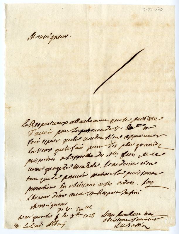 Lettera di La Bastré al cardinale Annibale Albani (1727 dicembre 1)
