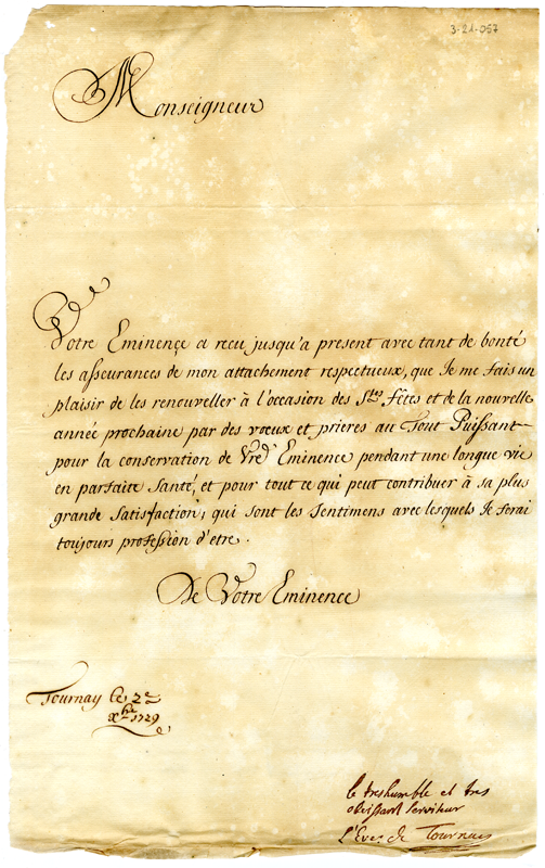 Lettera del vescovo di Tournai al cardinale Annibale Albani (1729 dicembre 2)