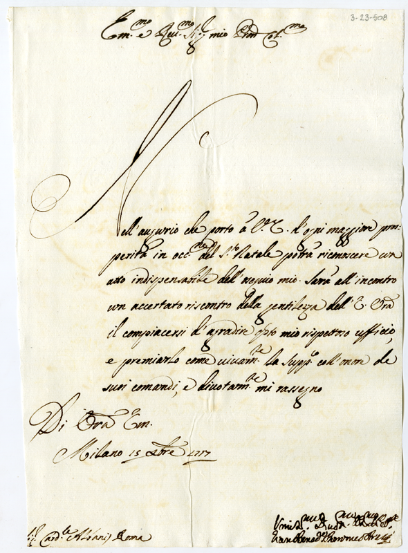 Lettera di Gian Benedetto Borromeo al cardinale Annibale Albani (1717 dicembre 15)