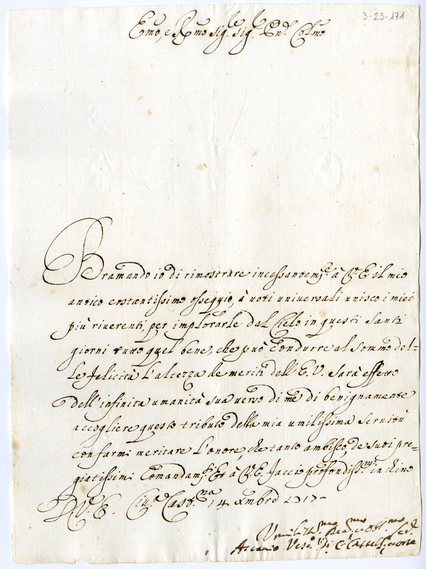 Lettera di Ascanio vescovo di Civita Castellana al cardinale Annibale Albani (1717 dicembre 14)