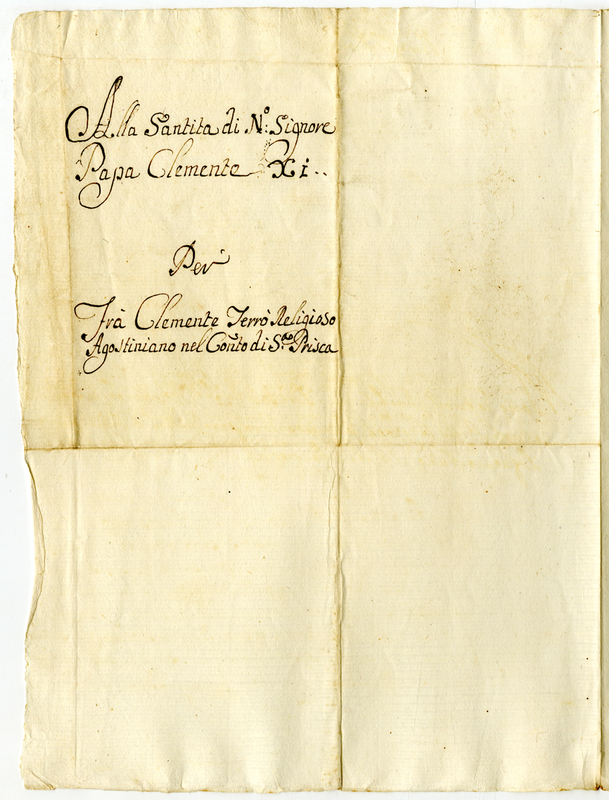 Lettera di fra Clemente Terrò agostiniano del convento di Santa Prisca a papa Clemente XI (1700-1721)