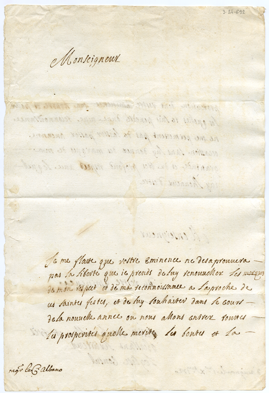 Lettera del console di Avignone al cardinale Annibale Albani (1720 dicembre 1)