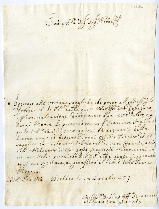 Lettera di Alessandro Mattei al cardinale Annibale Albani (1729 dicembre 18)