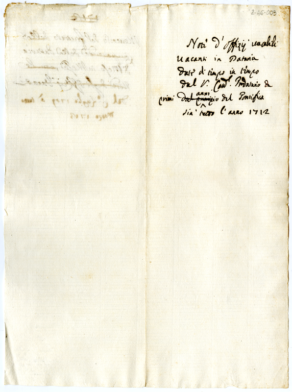 Memorie del fruttato della dataria di Mese in Mese dal 1° luglio 1709 a tutto marzo 1713