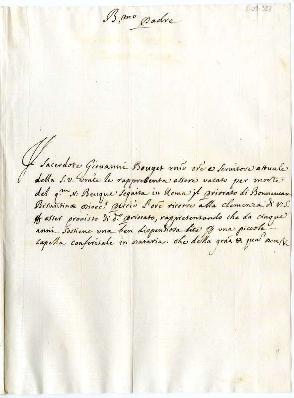 | dc.description | Chiede di poter avere il priorato di Bonneveax per morte di N. Beuque | |