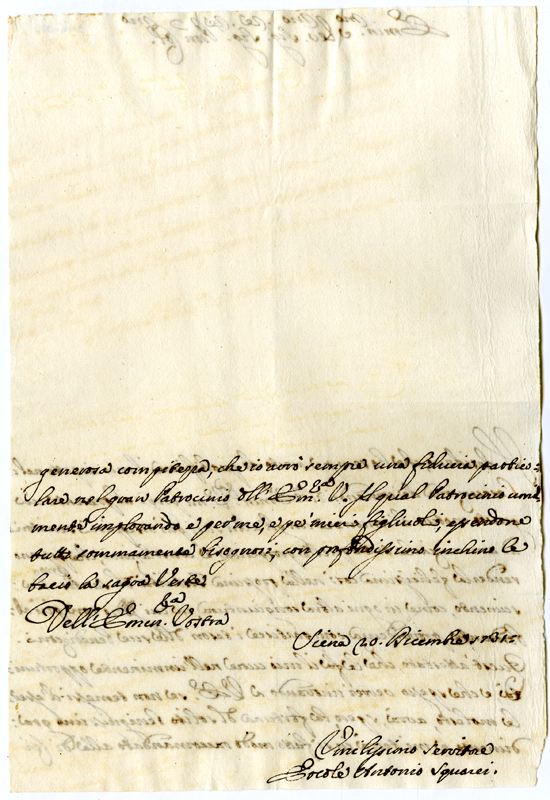 Lettera di Ercole Antonio Squarci al cardinale Annibale Albani (1731 dicembre 20)