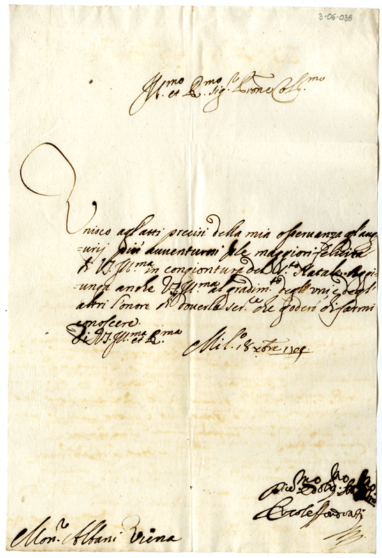 Lettera di Ercole Sfondrati ad Annibale Albani (1709 dicembre 18)