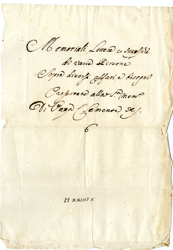 "Memoriali, lettere, e suppliche di varie persone sopra diversi affari e bisogni presentate alla santa memoria di papa Clemente XI. 6"