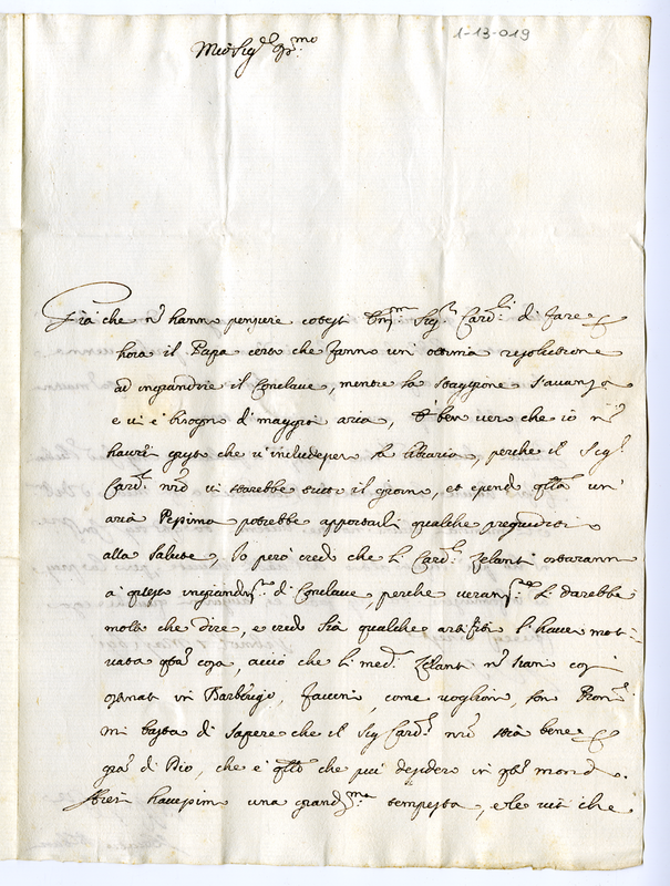 Lettera di Orazio Albani a Fabrizio Felici per Giovanni Francesco Albani (1691 marzo 7)